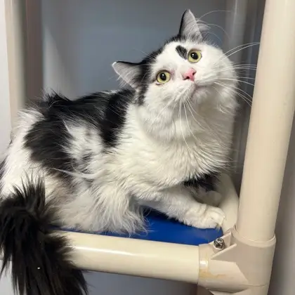 Meet Bucky! He enjoys spending his days playing gently with toys and lounging nearby, always ready for a gentle pat or a cozy lap to curl up on. Bucky’s affectionate nature makes him an ideal companion for anyone looking to add a loving member to their family. Consider giving Bucky a forever home where he can share his limitless love and brighten your days. Come meet Bucky at the Humane Society of Southern Wisconsin today!