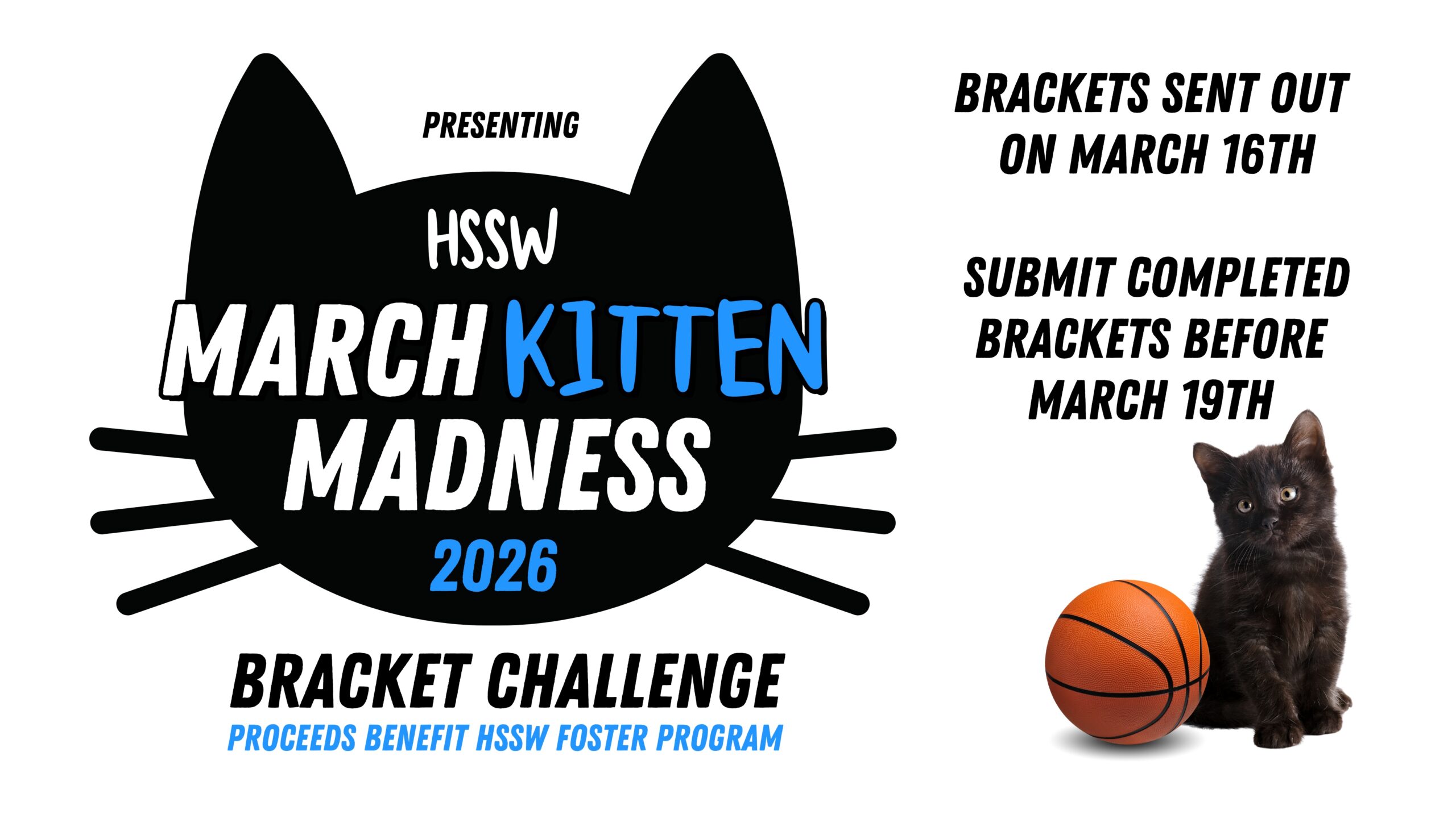 The March Madness Tournament has begun, but that doesn’t mean you can’t get in on the kitten fun! HSSW will care for over 800 kittens each year. As you can imagine this can get very expensive. In fact, we’ve crunched the numbers and on average, it will cost HSSW $500 PER KITTEN to raise the kitten from birth to adoption. If you’d like to help us out with this grand undertaking, send the kittens a gift – any amount helps!