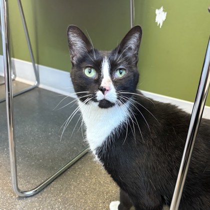 Introducing Holiday, a lovely tuxedo girl who’s come a long way. Once a bit timid, she’s blossomed into a big love bug– full of affection, head boops, and cozy snuggles. Her gentle transformation is a reminder that with a little time and love, the sweetest bonds can grow. Now, Holiday is all about giving love and soaking it right back in!